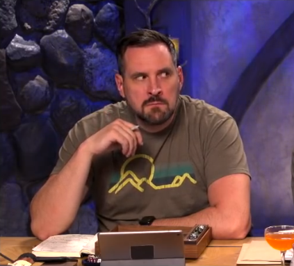 As Matt describes his appearance, Travis has to remember to breathe from nerves. He starts fidgeting with his beard. He’s happy to let Caduceus take the lead, although he stays tense.