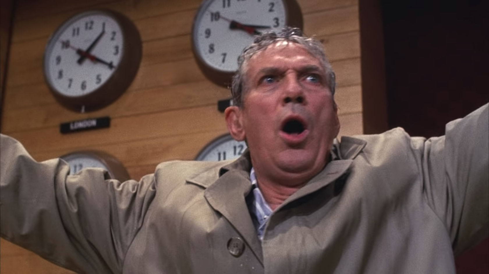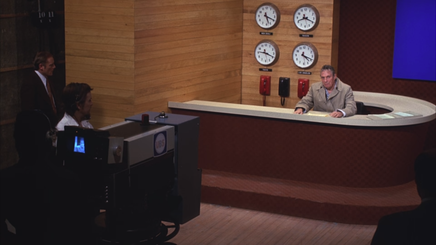 Network: Beale walks around the desk and out of the set towards the camera, “I want you to get up right now. Get up, go to your windows, open them, and stick your head out, and yell, ‘I’m as mad as hell, and I’m not gonna take this anymore!’ Things have got to change!”